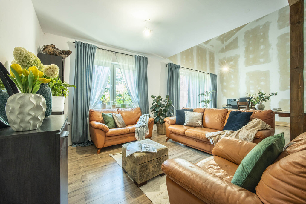 - Ekologiczne i ekonomiczne ogrzewanie – pompa ciepła 10 kW oraz instalacja fotowoltaiczna 10 kW.