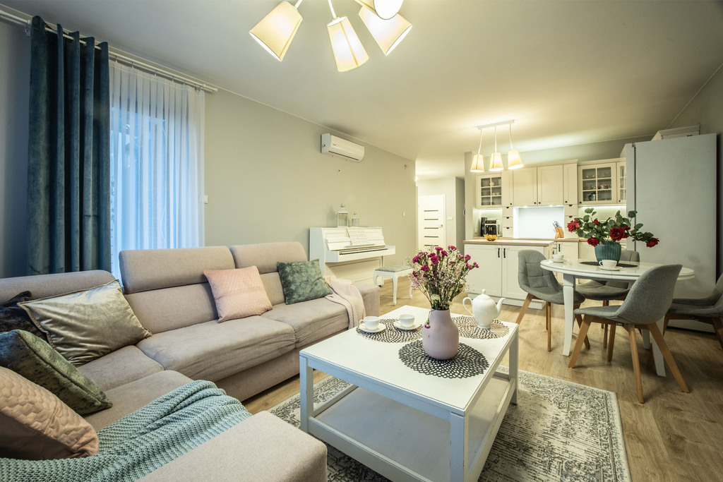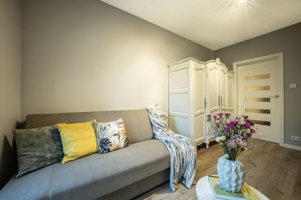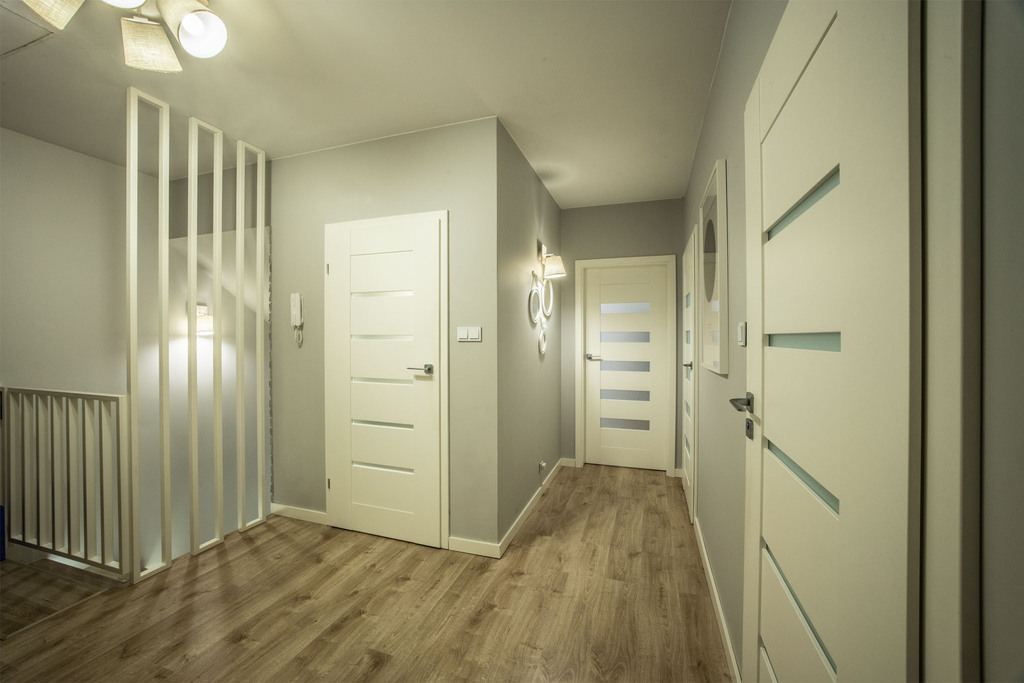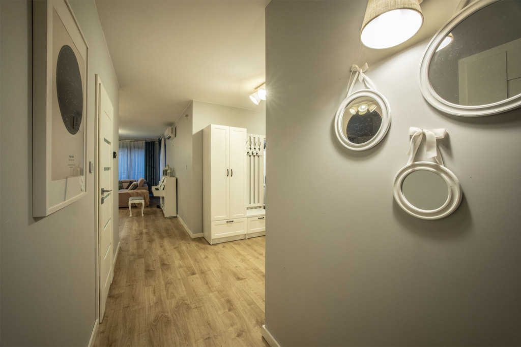 Mieszkanie znajduje się na pierwszym piętrze kameralnego, dwupiętrowego budynku z 2018 roku. Dzięki dobrze zaprojektowanemu rozkładowi pomieszczeń każdy domownik znajdzie tu swoje miejsce, a przestrzeń jest wykorzystana w pełni efektywnie.