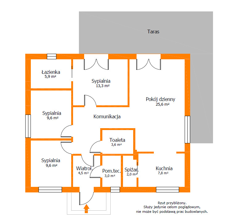 - salon z miejscem na duże przeszklenia i wyjście na taras;
