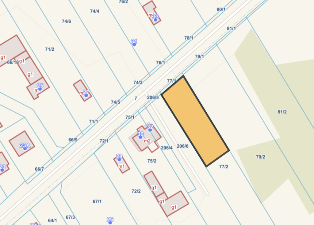 - Prąd, woda, kanalizacja oraz gaz dostępne są w drodze bezpośrednio przy działce.