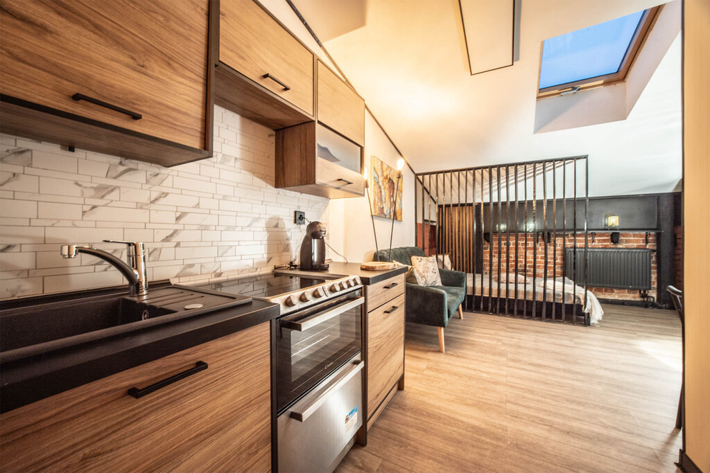 Mieszkanie w pełni wyposażone, zaprojektowane w stylu loftowym, gwarantuje komfort użytkowania, a jego kompaktowy charakter sprawia, że jest to przestrzeń łatwa do utrzymania i atrakcyjna dla osób poszukujących funkcjonalnego, ale stylowego miejsca do życia. Idealne dla singli, par, a także jako opcja wynajmu dla turystów czy osób pracujących w centrum miasta.