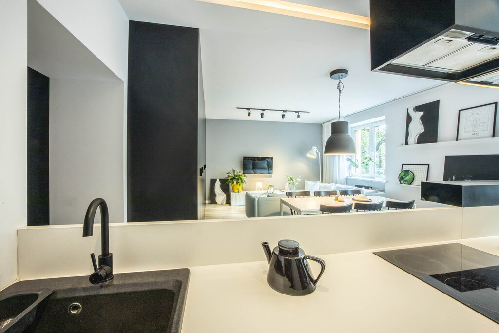 W środku wszystko pachnie – podłogi, ściany, kuchnia, która wygląda tak dobrze, że aż chce się gotować (albo przynajmniej udawać, że się gotuje).