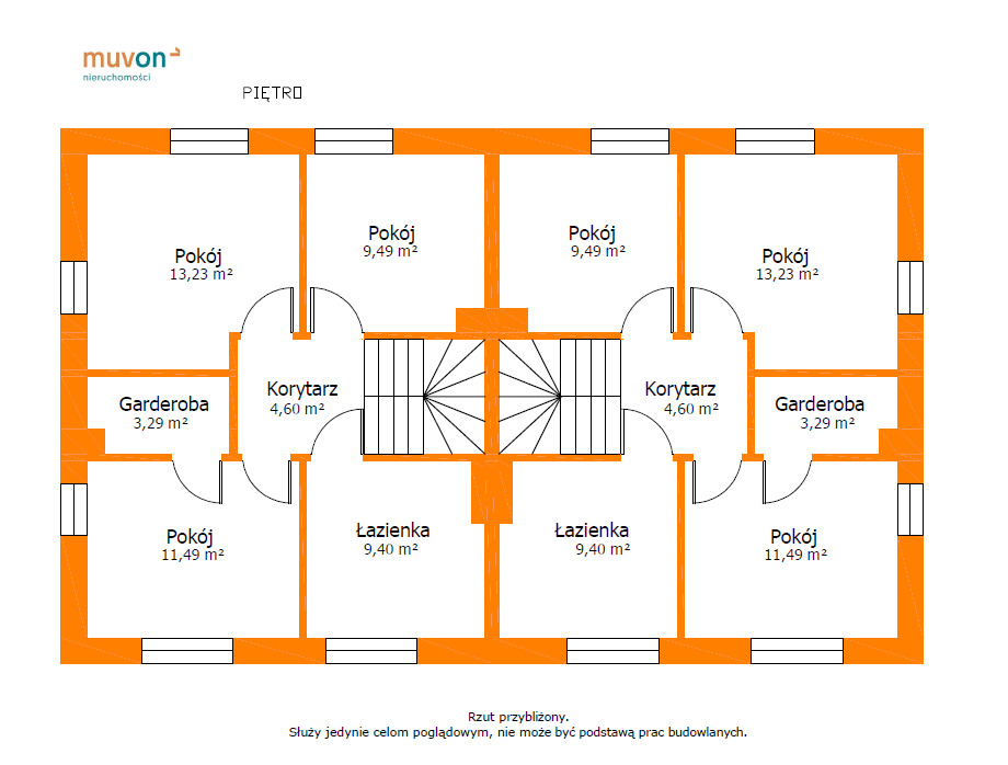• Dwukondygnacyjny układ bez skosów – pełna wysokość pomieszczeń na piętrze.