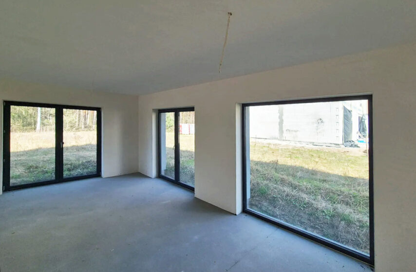 Dom z 2024 r., w zabudowie bliźniaczej – stan deweloperski, bez skosów, w cichym otoczeniu lasu!
