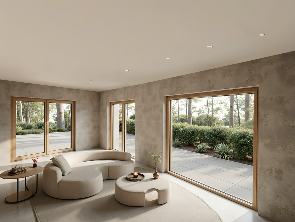 • Okna trzyszybowe w kolorze antracytowym (obustronnie), granitowe parapety zewnętrzne.