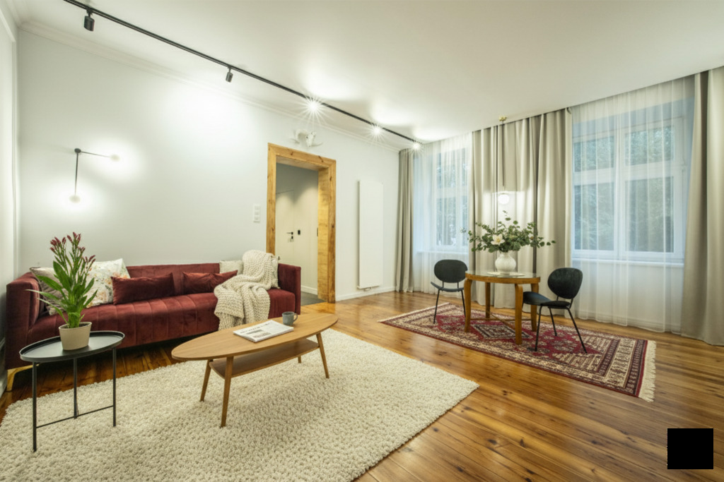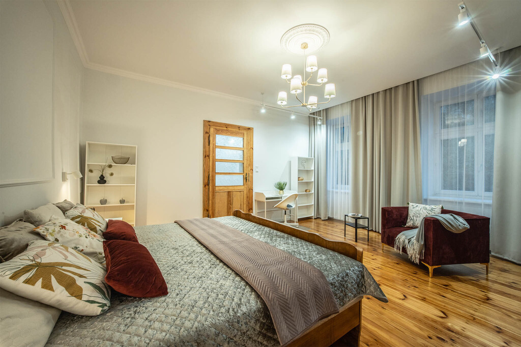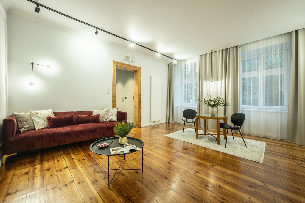 W 2023 roku mieszkanie przeszło generalny remont. Wymieniono wszystkie instalacje, a wnętrze zaprojektowano w oparciu o spójną koncepcję architektoniczną. Efekt? Harmonijne połączenie nowoczesnego standardu z ponadczasową elegancją.