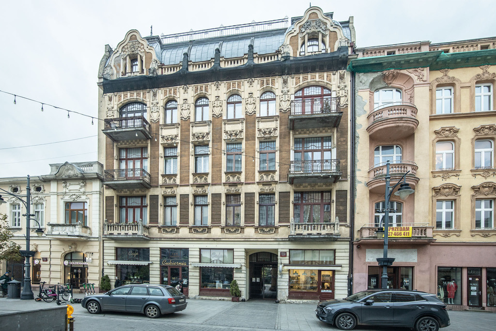Lokal mieści się na pierwszym piętrze secesyjnej kamienicy z 1904 roku, zaprojektowanej przez wybitnego łódzkiego architekta Gustaw Landau-Gutenteger. To jeden z najbardziej charakterystycznych budynków w mieście – z bogato zdobioną elewacją, mansardowym dachem i detalem, który przyciąga spojrzenia.