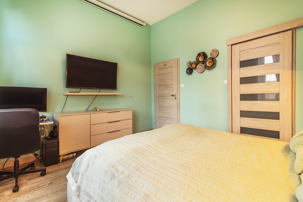 Do mieszkania przynależy piwnica, schowek na półpiętrze oraz zamykane pomieszczenie na strychu. To duży atut – strych może pełnić funkcję domowego warsztatu, siłowni, miejsca do realizacji pasji lub dodatkowej przestrzeni do przechowywania.