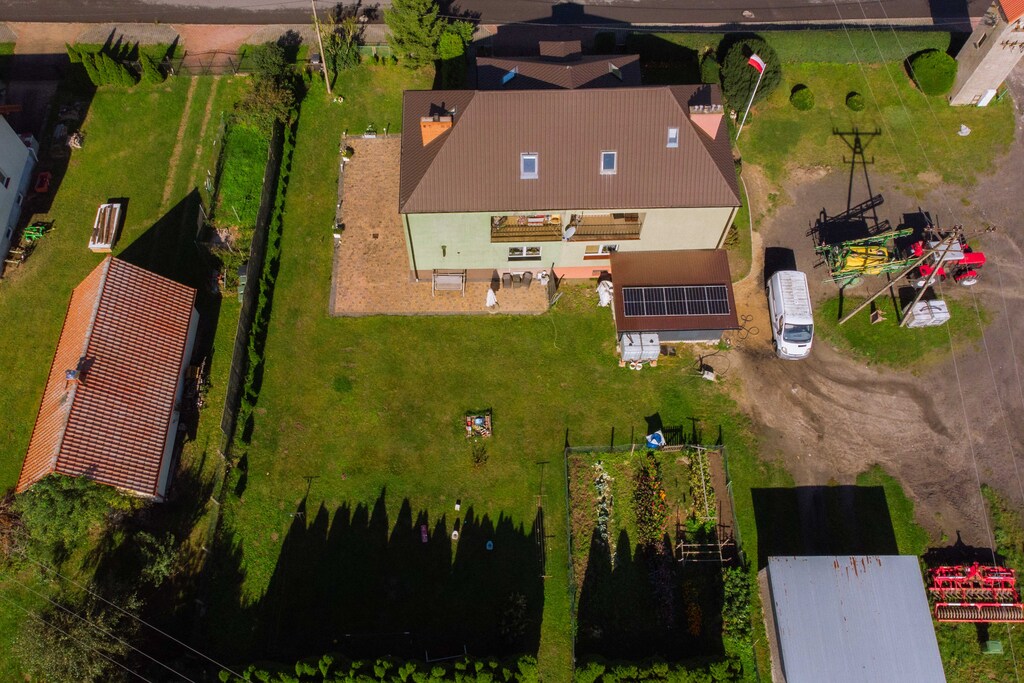 Dom znajduje się w spokojnej okolicy z szybkim dostępem do Stargardu (10 km), co sprawia, że jest to idealne miejsce dla rodzin szukających komfortu, przestrzeni i prywatności.