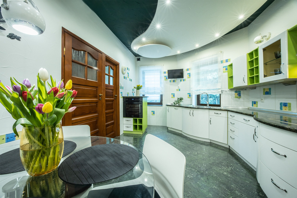 - Kuchnię z kamiennym blatem oraz spiżarnią.