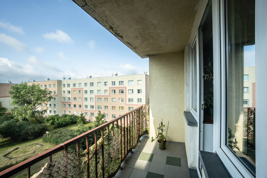 Nieruchomość o powierzchni 50,53 m2 położona jest na trzecim piętrze w niskim bloku.