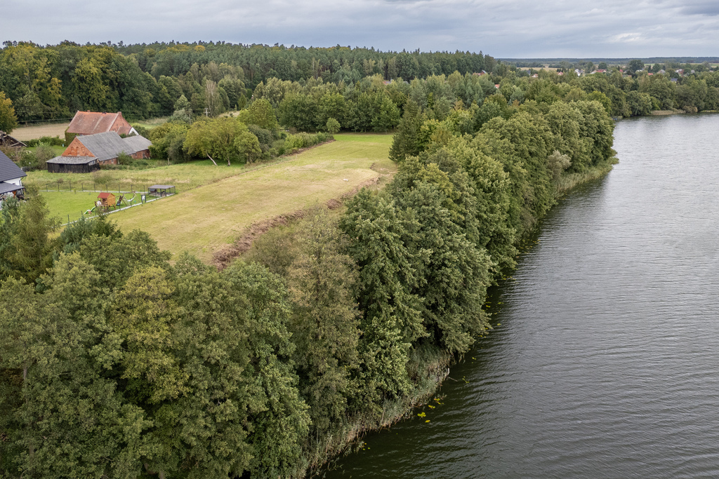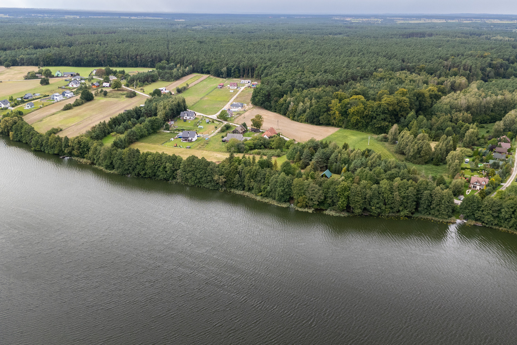 Na sprzedaż działka o powierzchni 7400 m2 z własną linią brzegową jeziora – aż 96 metrów łagodnego brzegu z miejscami na urządzenie plaży.