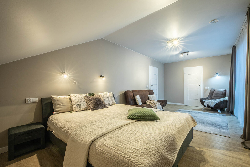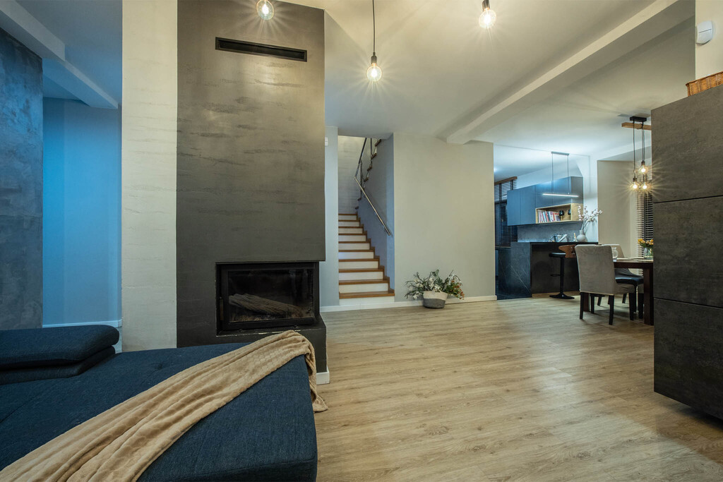 - Inteligentne rozwiązania: Rekuperacja (wentylacja mechaniczna), ogrzewanie gazowe oraz nastrojowy kominek zapewniają idealną temperaturę i niskie koszty utrzymania.
