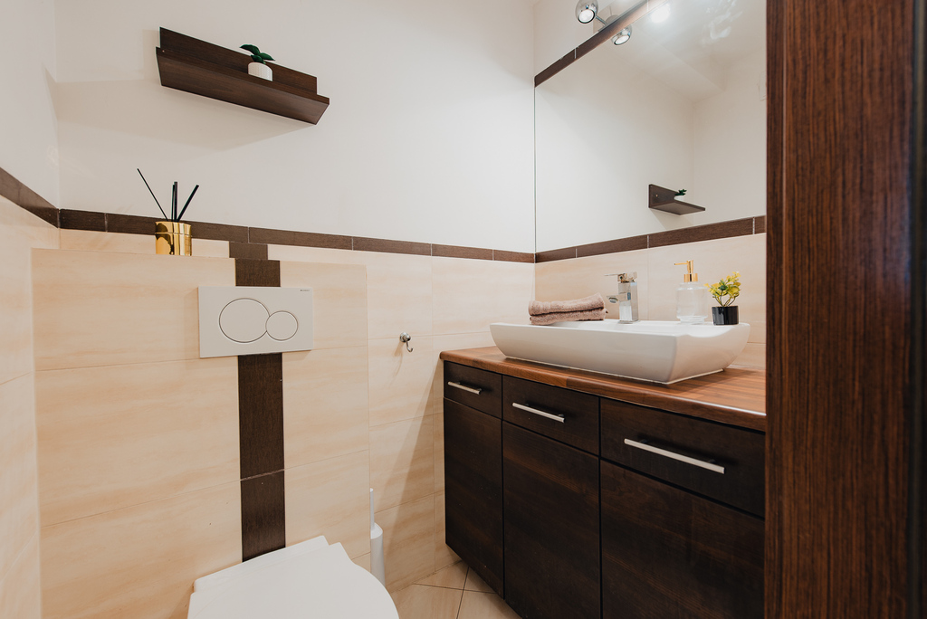 - Łazienka 3,2 m² + osobne WC 1,5 m²