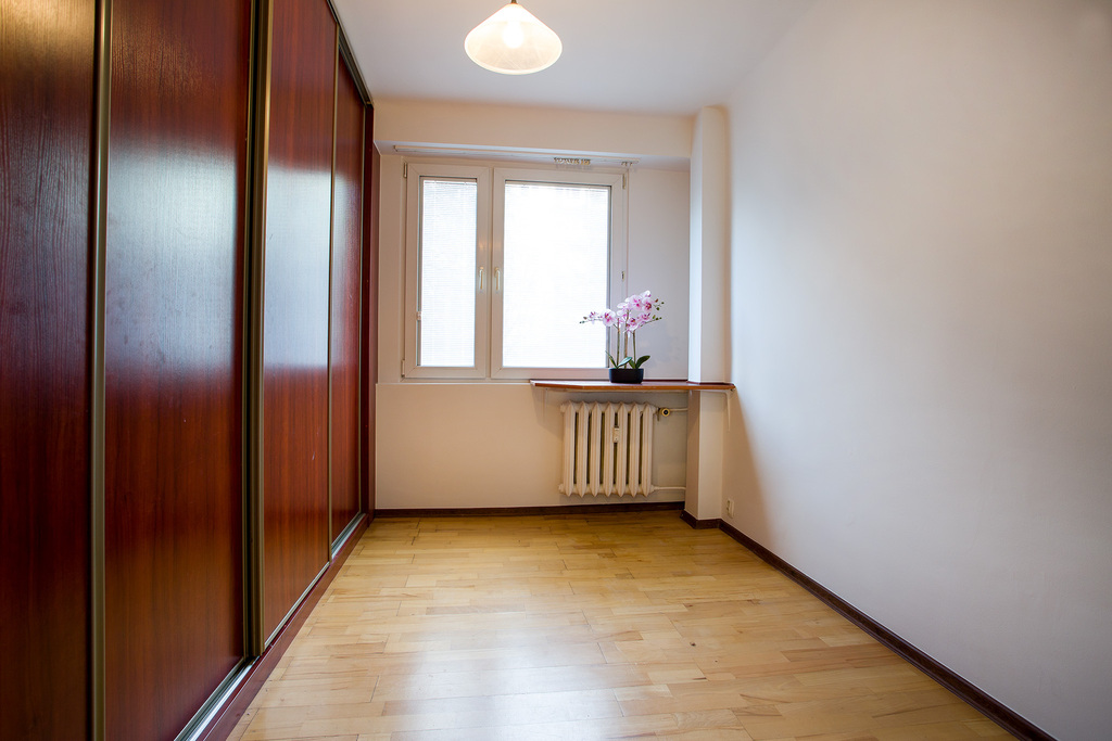 W mieszkaniu znajduje się duży salon oraz 2 sypialnie, jedna z nich z duża szafą w zabudowie.