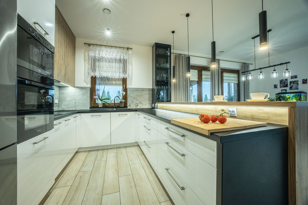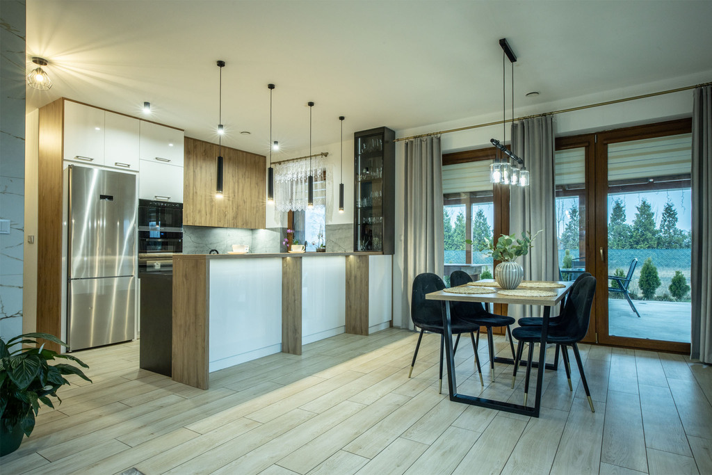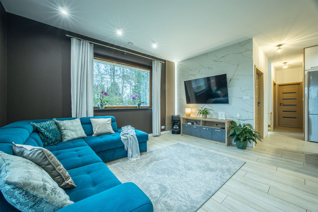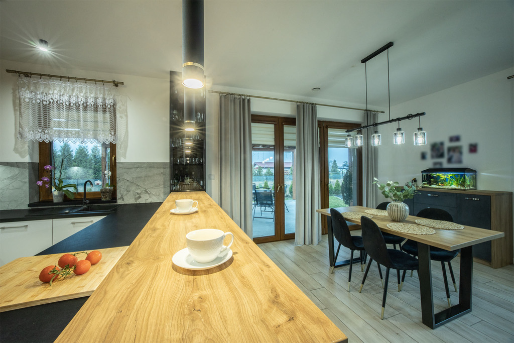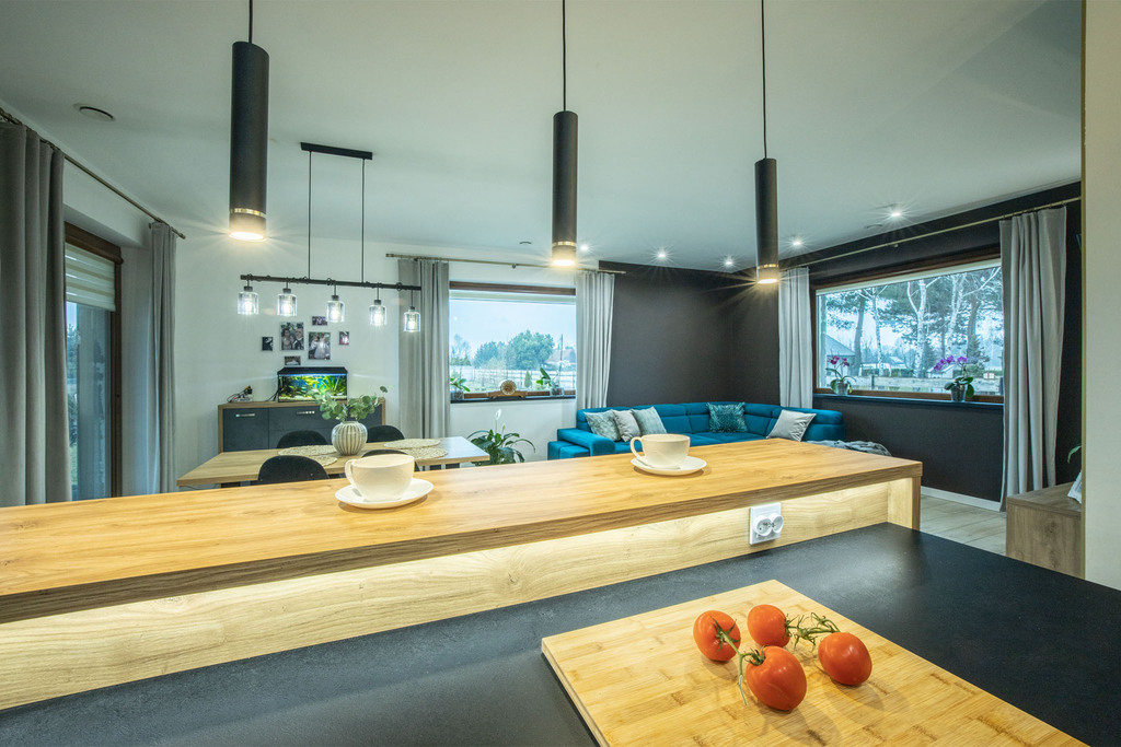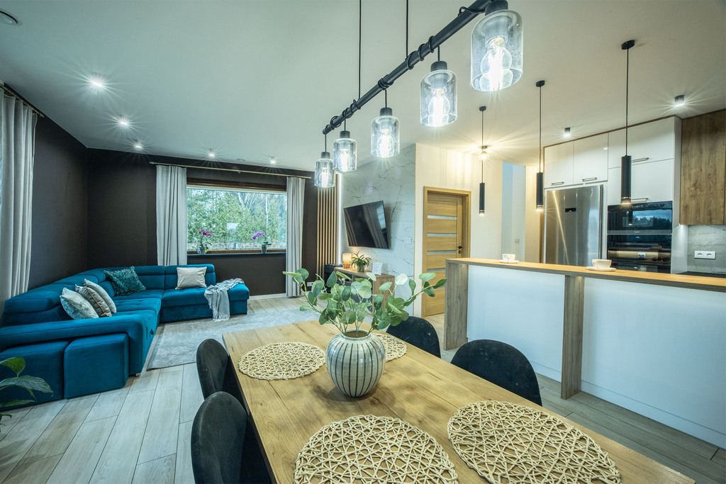 • Przestronny salon z otwartą kuchnią, idealny do wspólnego spędzania czasu.