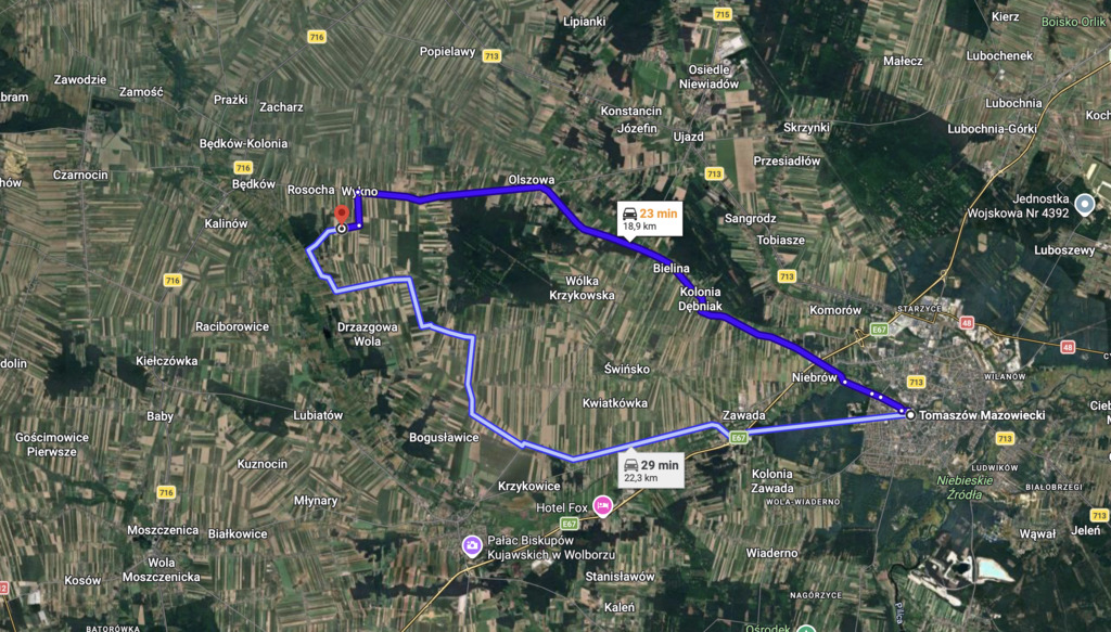 - Tomaszów Mazowiecki: tylko 19 km (ok. 20 min).