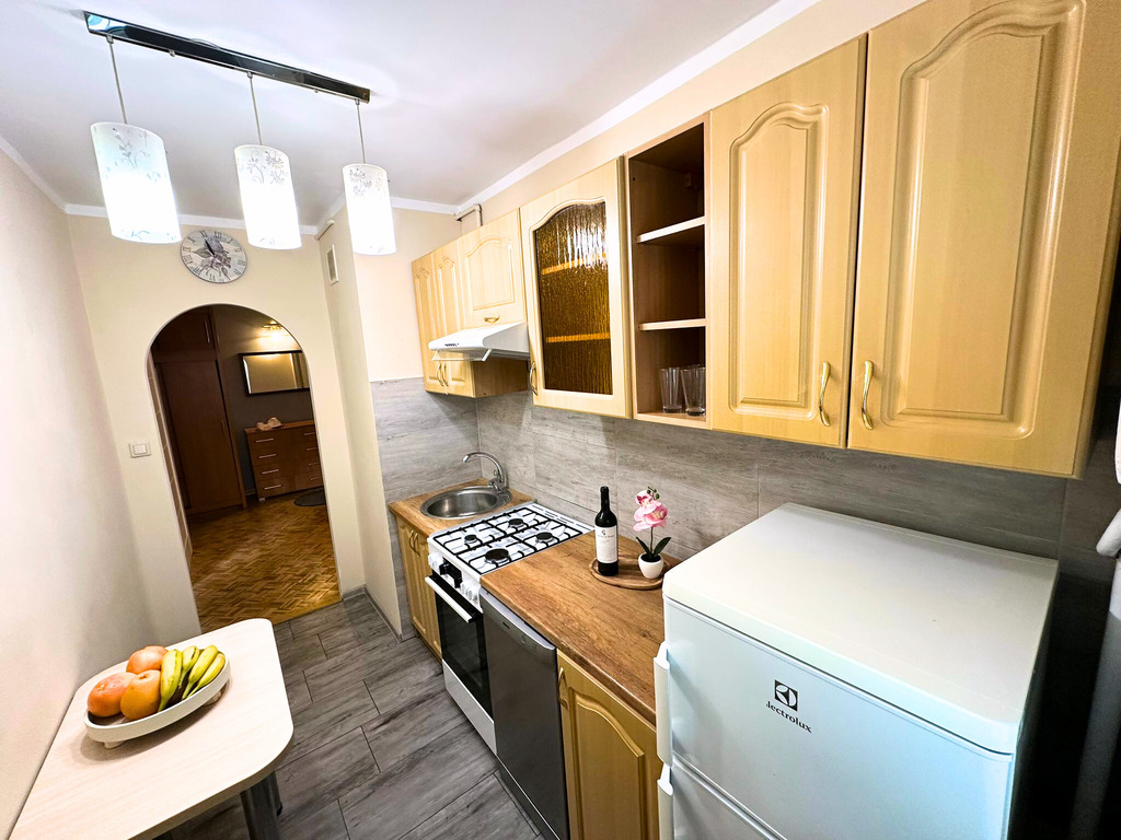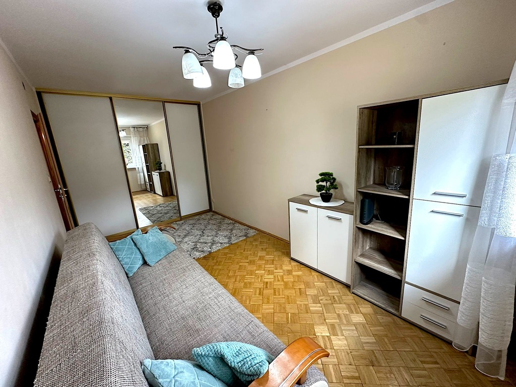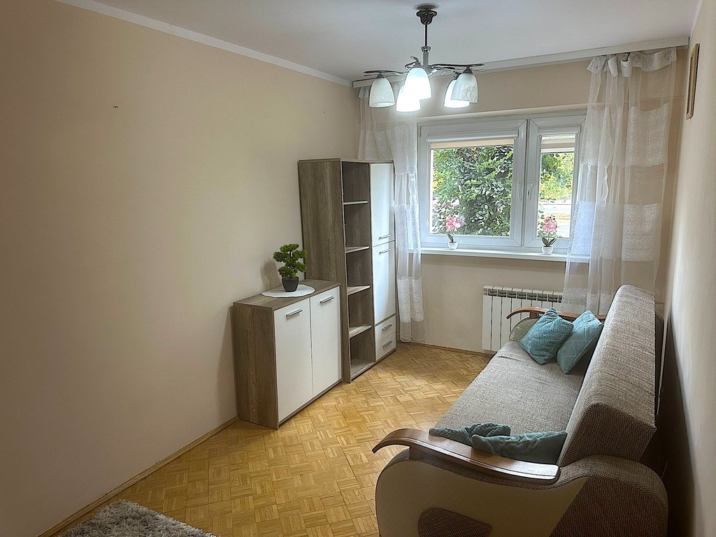 Przestronne, jasne mieszkanie o powierzchni 49 m², położone na wysokim parterze. Składa się z dwóch pokoi, oddzielnej kuchni oraz łazienki. Mieszkanie rozstawne i bardzo widne, gotowe do zamieszkania od zaraz. W pełni wyposażone: w kuchni piekarnik, lodówka, zmywarka, okap. Dodatkowo mieszkanie posiada dużą piwnicę, co stanowi praktyczne rozwiązanie na przechowywanie.