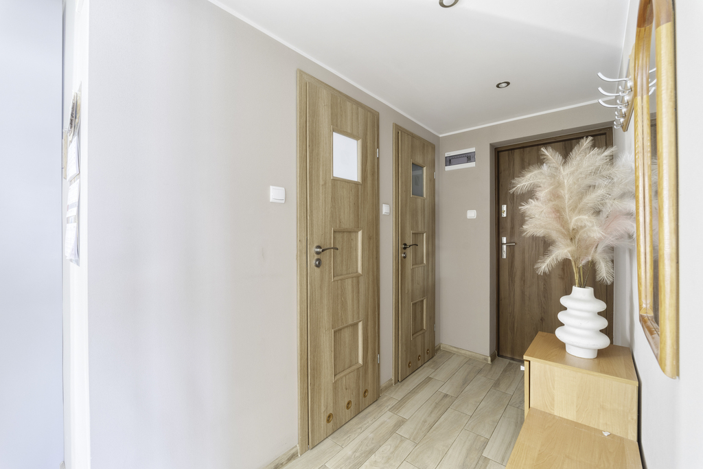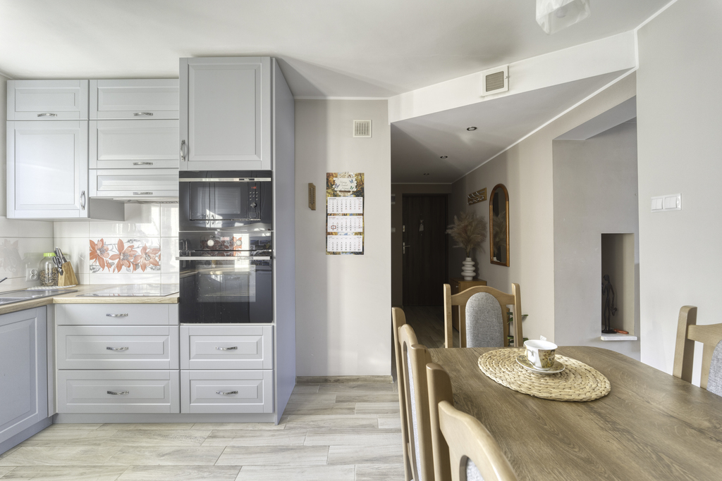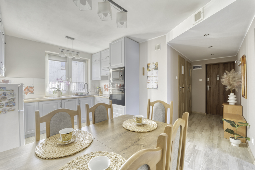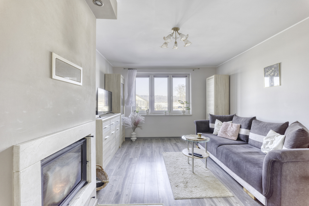 Mieszkanie znajduje się w spokojnej, mało zabudowanej okolicy, która gwarantuje prywatność. Choć codzienne zakupy czy wizyta u lekarza wymagają krótkiej, kilkukilometrowej przejażdżki, powrót do domu, w którym czeka na Ciebie ciepło własnego kominka i widok na ogród, rekompensuje każdą minutę trasy. To miejsce dla kogoś, kto potrafi docenić urok prostego życia na własnych zasadach.