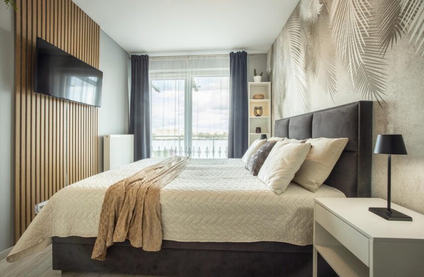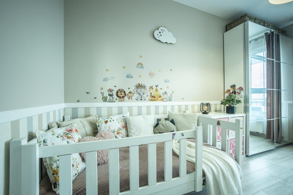 Okna mieszkania wychodzą na południowy-wschód, wnętrze jest pełne naturalnego światła od poranka aż do popołudnia, tworząc przyjemnie ciepły i jasny klimat przez cały dzień.