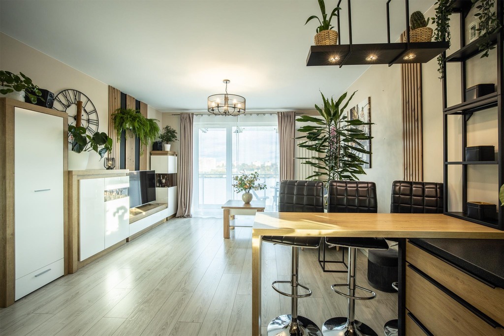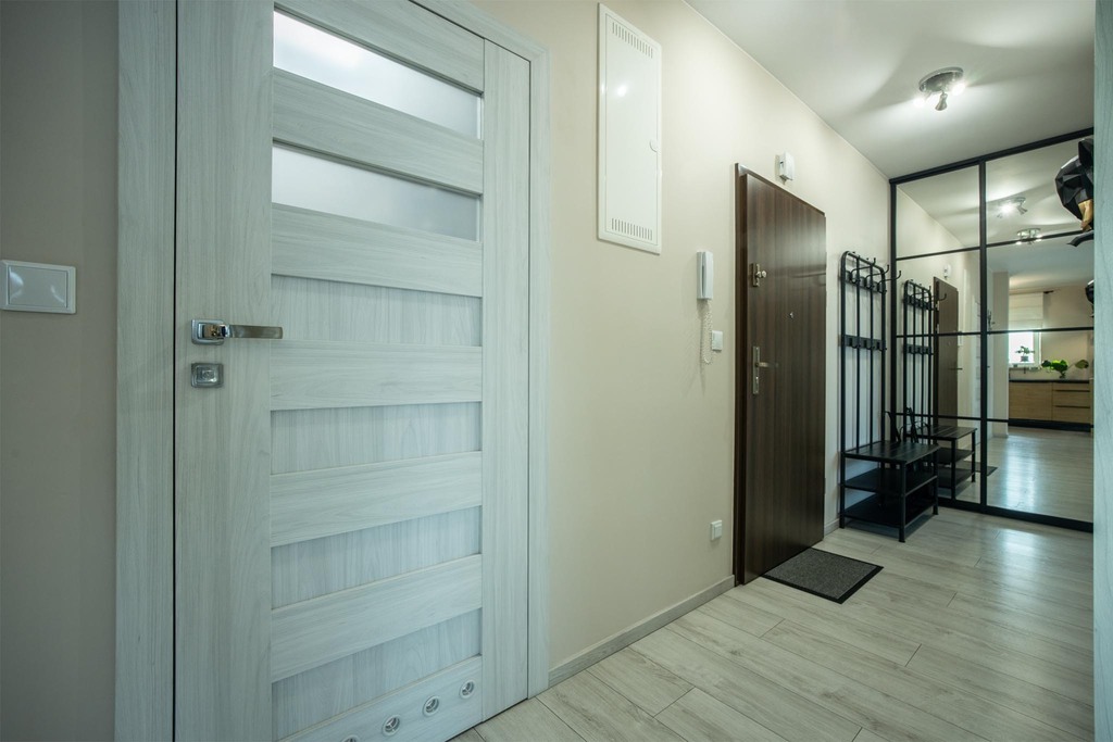 Stan mieszkania jest idealny! Nie wymaga dodatkowego wkładu finansowego, jest wyposażone i gotowe do wprowadzenia. Kuchnia została zaprojektowana w formie otwartej co sprzyja swobodnej komunikacji między pomieszczeniami oraz umożliwia integrację podczas gotowania i spożywania posiłków z rodziną lub znajomymi. W przedpokoju wydzielono praktyczną garderobę, która doskonale sprawdzi się zarówno jako miejsce do przechowywania ubrań i obuwia, jak i funkcjonalna spiżarnia – w zależności od potrzeb domowników.