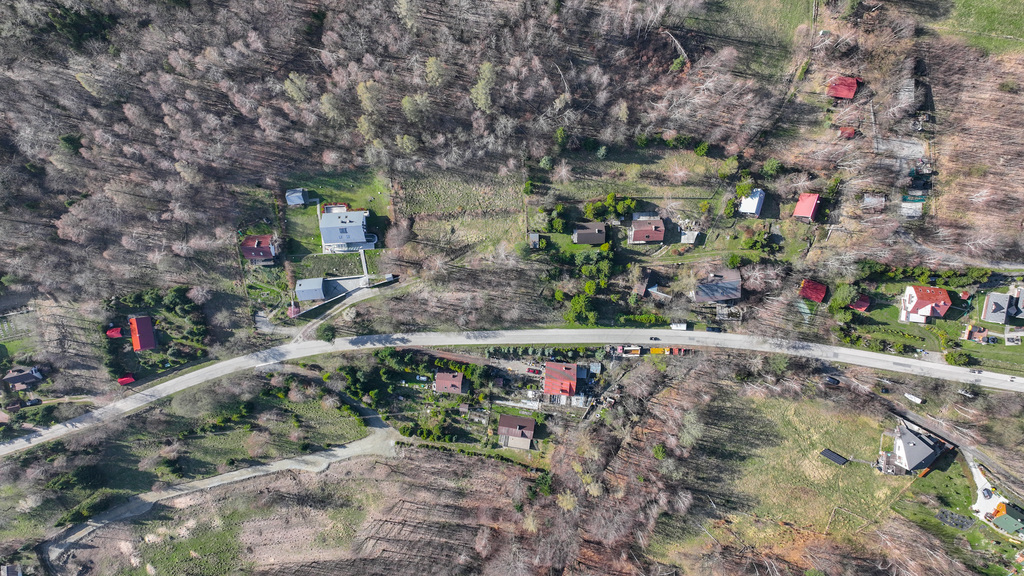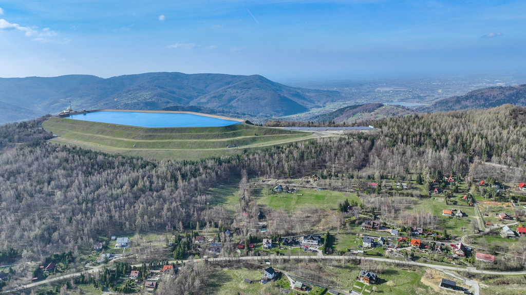 Działka o powierzchni 3055 m² otoczona jest siatką, zapewniając prywatność i bezpieczeństwo. Dzięki swojemu położeniu na wzgórzu nieruchomość oferuje spektakularne widoki na okoliczne pasma górskie, dolinę i Jezioro Międzybrodzkie.