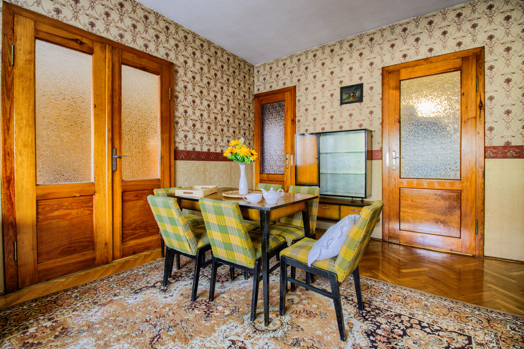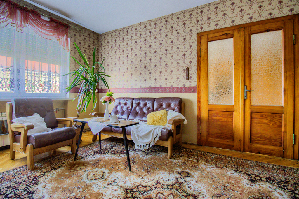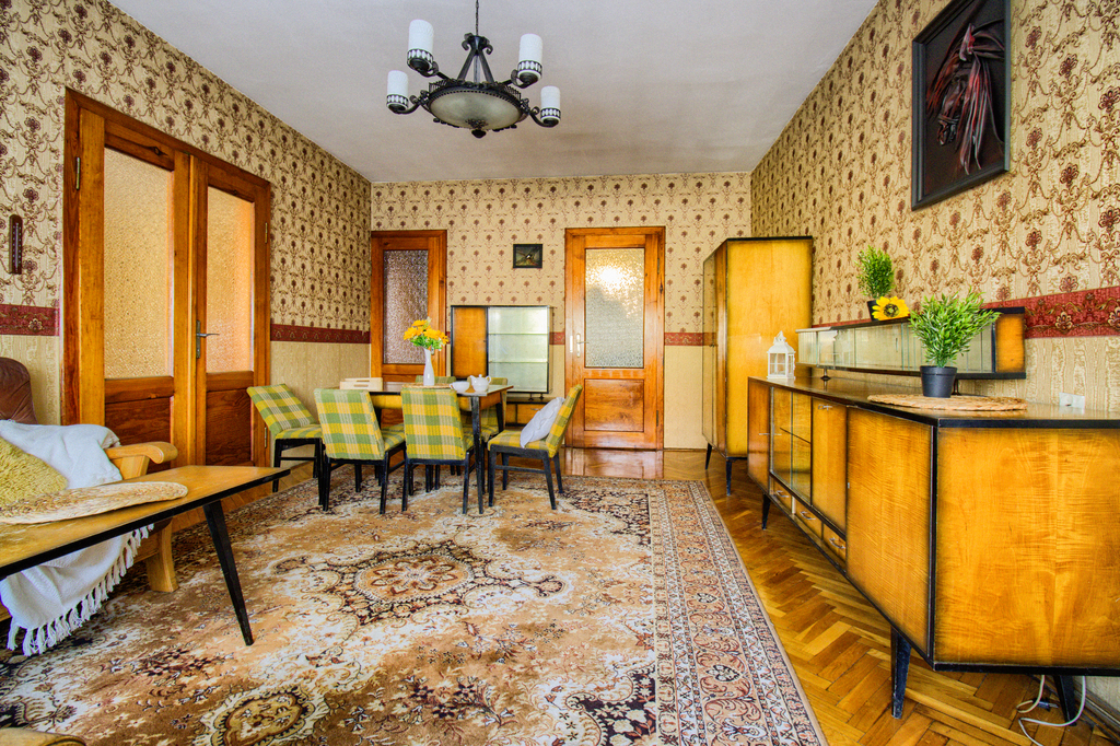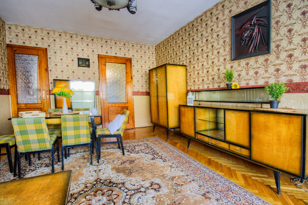 – Pierwsze piętro (ok. 120,81 m²): Przestronne, 4-pokojowe mieszkanie z osobną kuchnią i łazienką. Lokal jest w stanie do odświeżenia lub remontu, co daje nowemu właścicielowi swobodę w dostosowaniu wnętrz do własnych potrzeb i gustu.