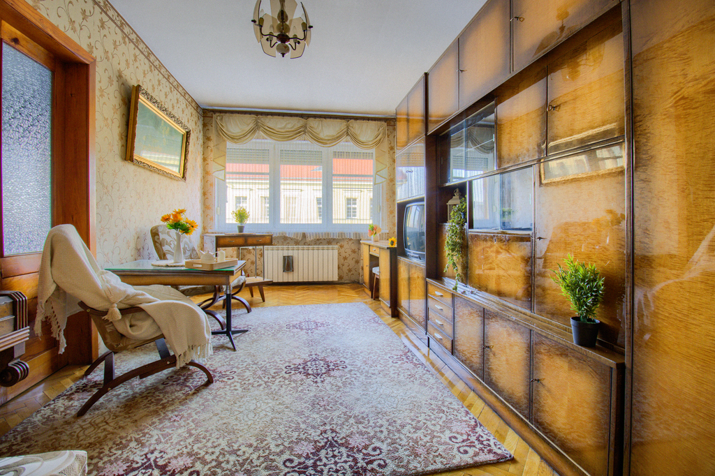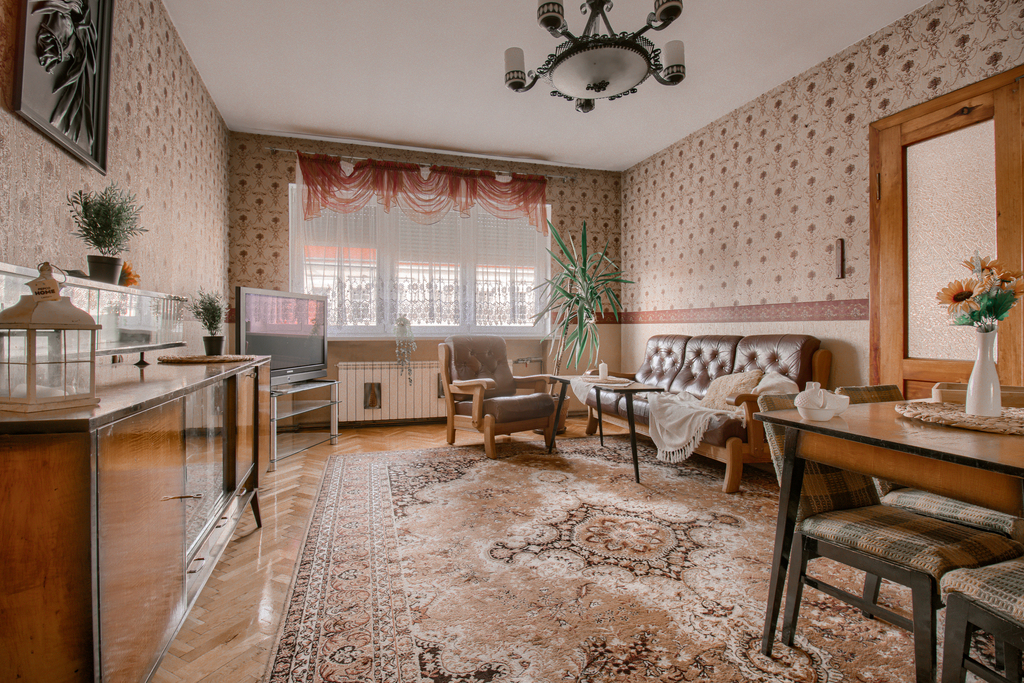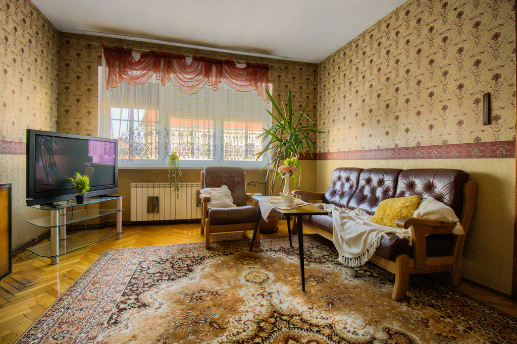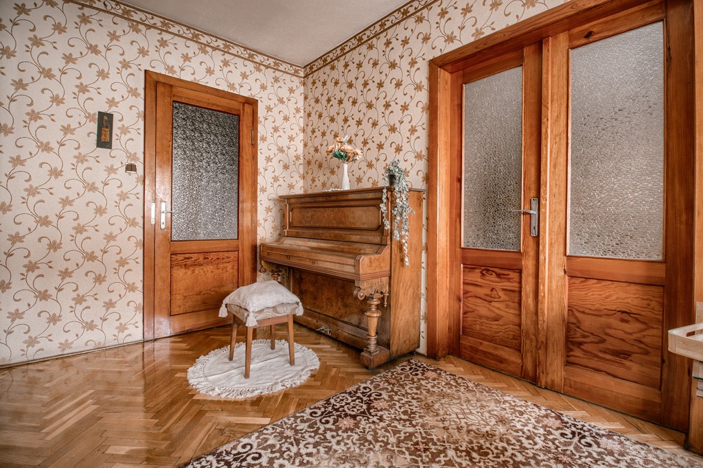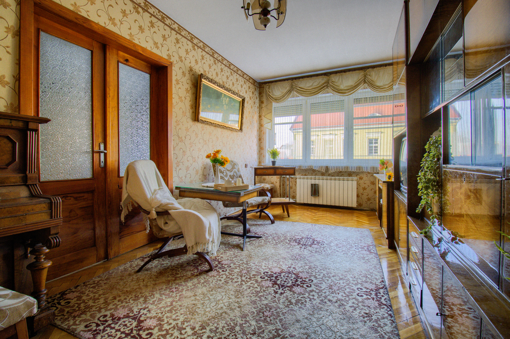 – Pierwsze piętro (ok. 120,81 m²): Przestronne, 4-pokojowe mieszkanie z osobną kuchnią i łazienką. Lokal jest w stanie do odświeżenia lub remontu, co daje nowemu właścicielowi swobodę w dostosowaniu wnętrz do własnych potrzeb i gustu.