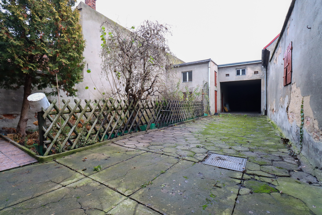 Na działce znajduje się również dwukondygnacyjny budynek gospodarczy z garażem i bramą przejazdową na podwórze, co dodatkowo zwiększa funkcjonalność całej nieruchomości.