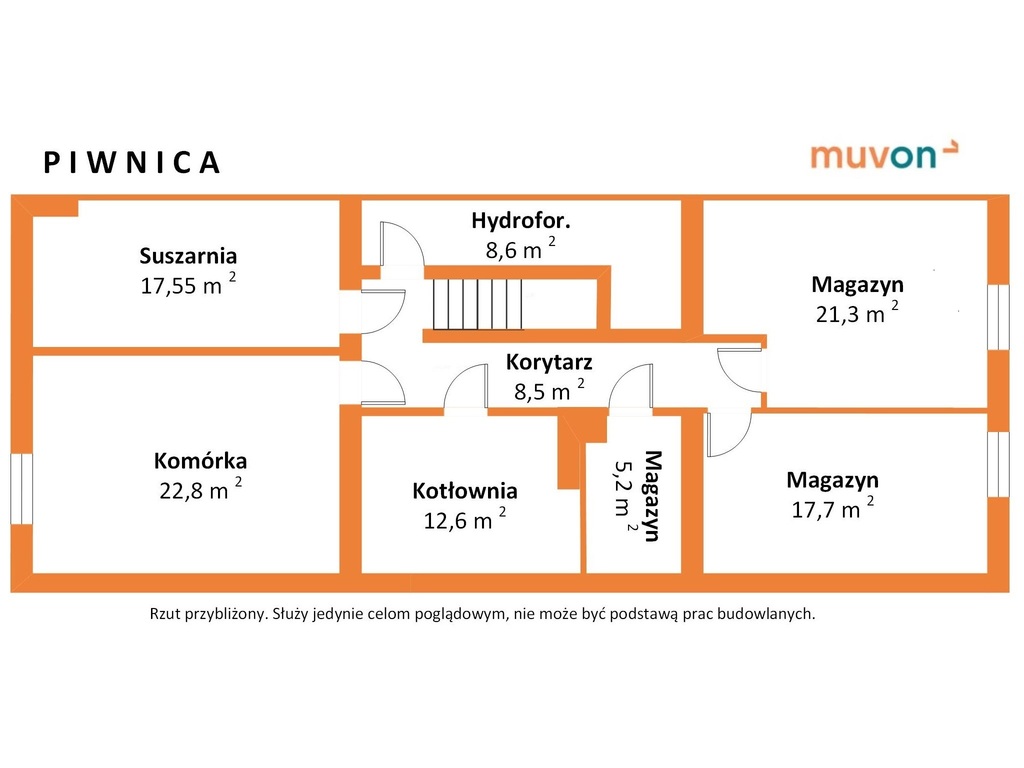 – Piwnica: O powierzchni około 105,75 m², zapewnia dodatkowe pomieszczenia gospodarcze, idealne do przechowywania sprzętów, materiałów czy wina.
