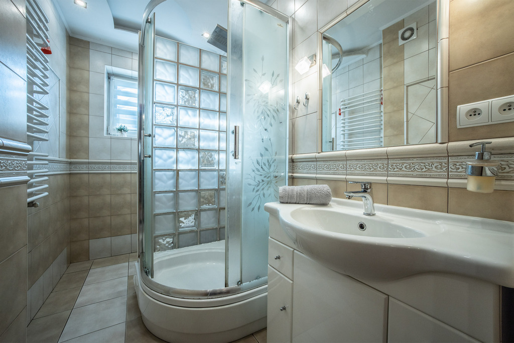 – łazienka z kabiną prysznicową,