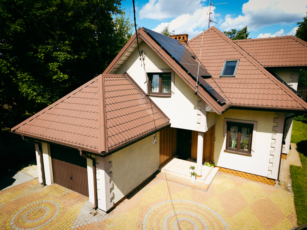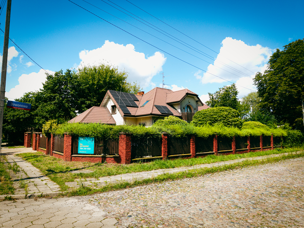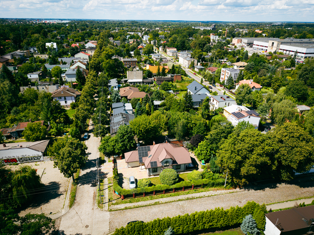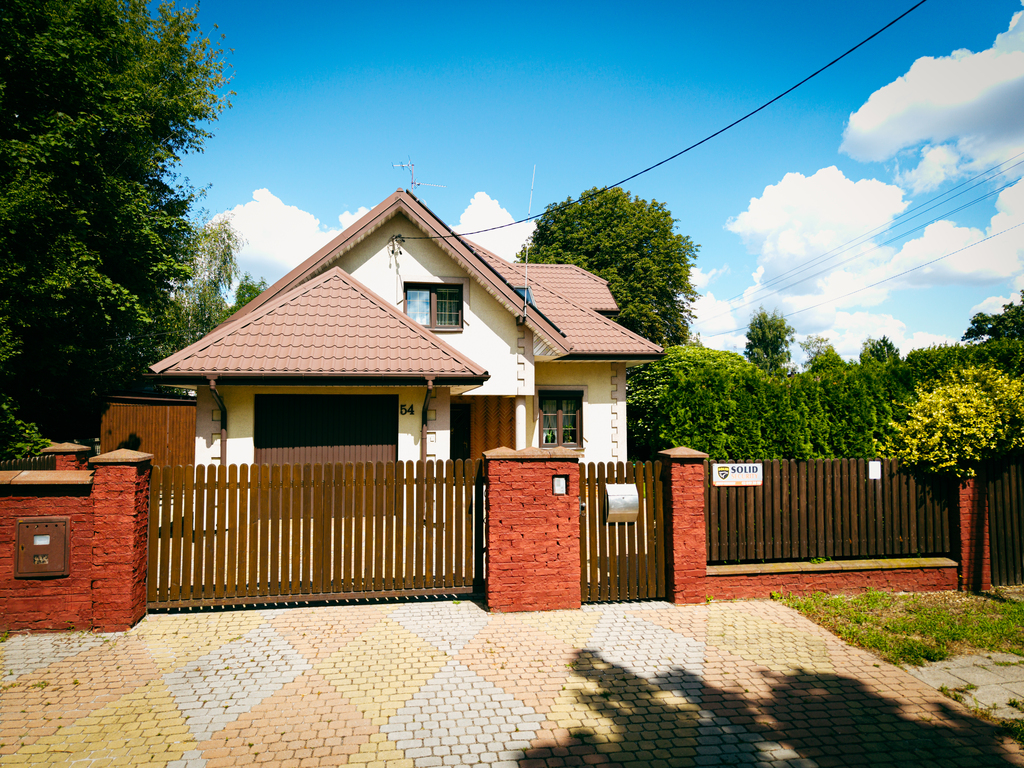 Przedmiotem sprzedaży jest wolnostojący, piętrowy dom z garażem w bryle budynku, o łącznej powierzchni użytkowej wynoszącej ok. 205 m². Wybudowany został w konstrukcji murowanej, z wykorzystaniem ceramiki. Na dachu zamontowana jest instalacja fotowoltaiczna, co istotne funkcjonuje zgodnie z korzystnymi „starymi zasadami”. Elewacja budynku to spójne połączenie różnych materiałów i struktur tworzące efektowną i ponadczasową kompozycję. Nieruchomość otoczona jest ogrodzeniem murowanym z drewnianymi sztachetami, furtką oraz bramą wjazdową. Posiada alarm i moniroring.