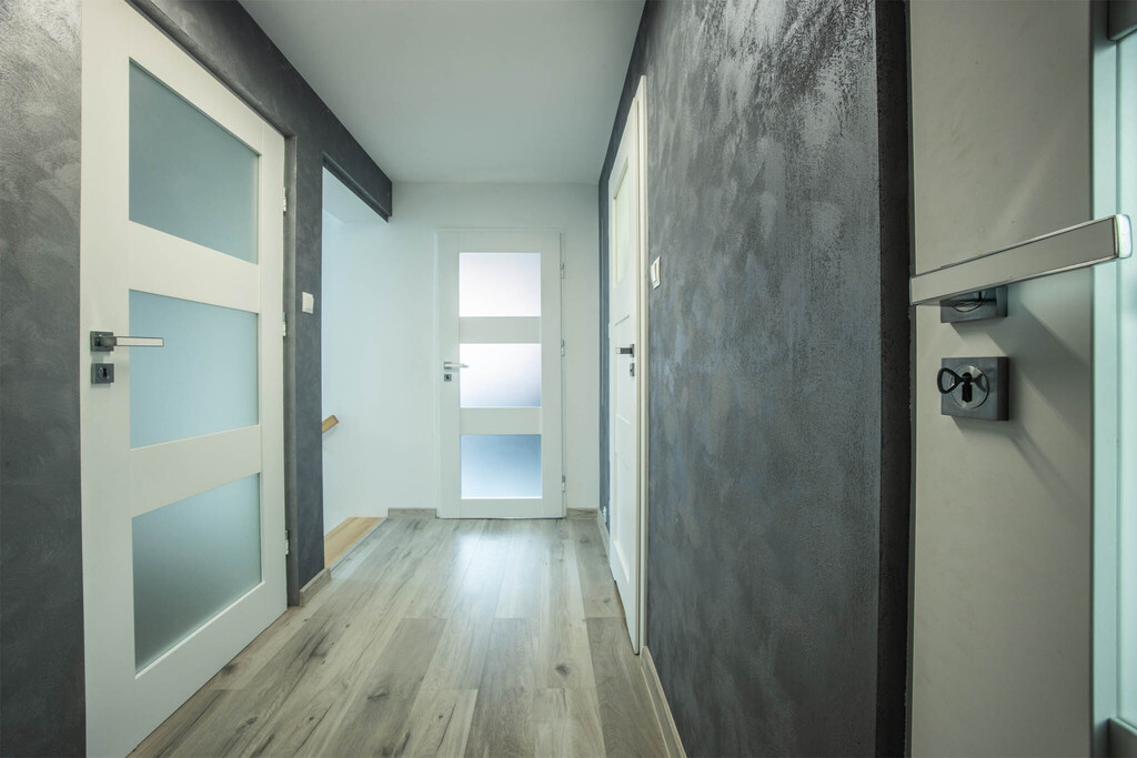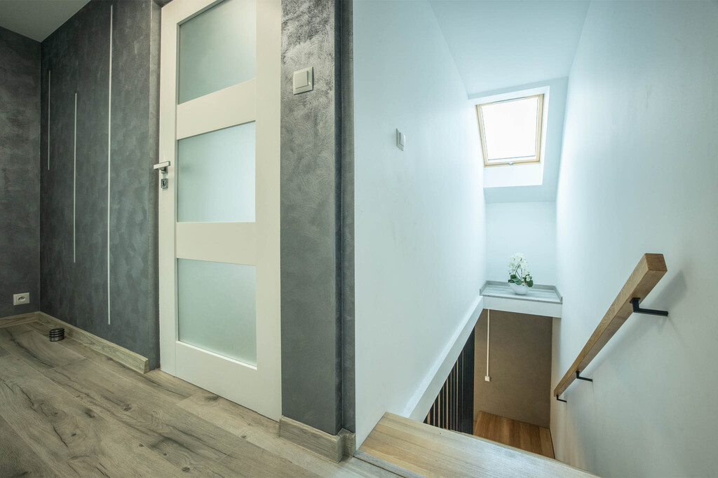 - przejście z korytarza do części podpiwniczonej, umożliwiające wygodny dostęp do poziomu -1.