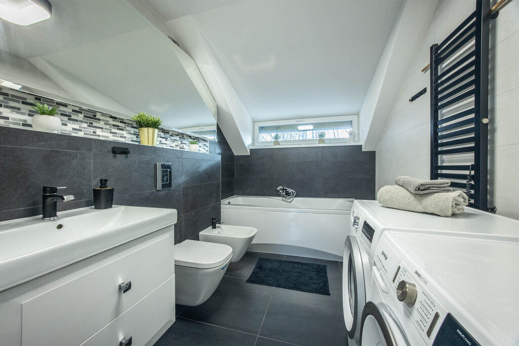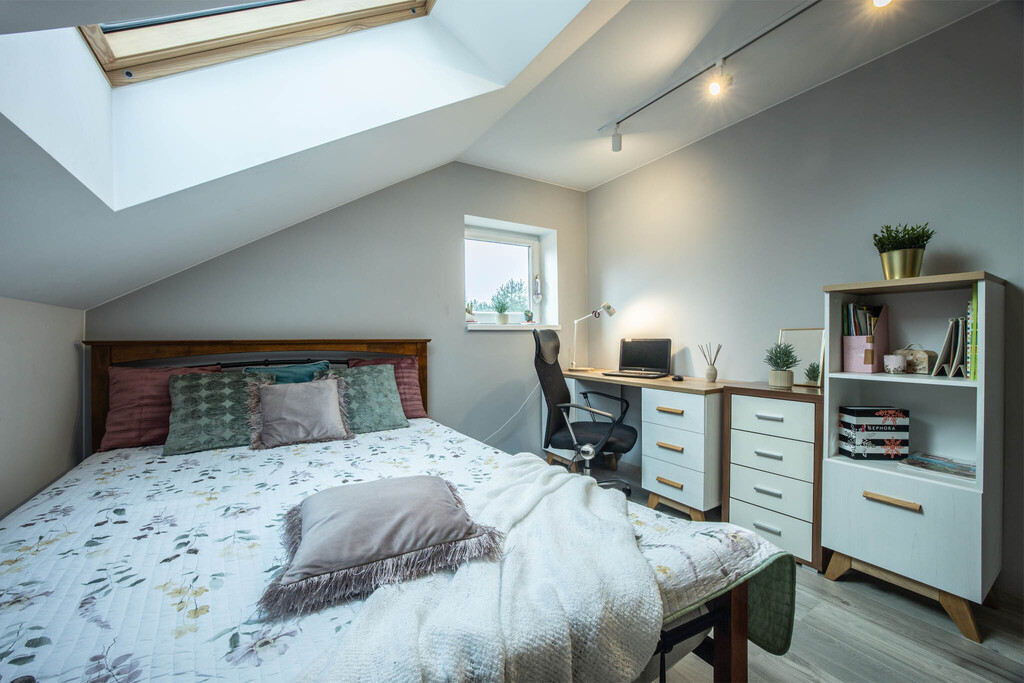 - poprawę izolacji termicznej – dom jest bardzo dobrze docieplony, co przekłada się na wyjątkowo niskie koszty ogrzewania.