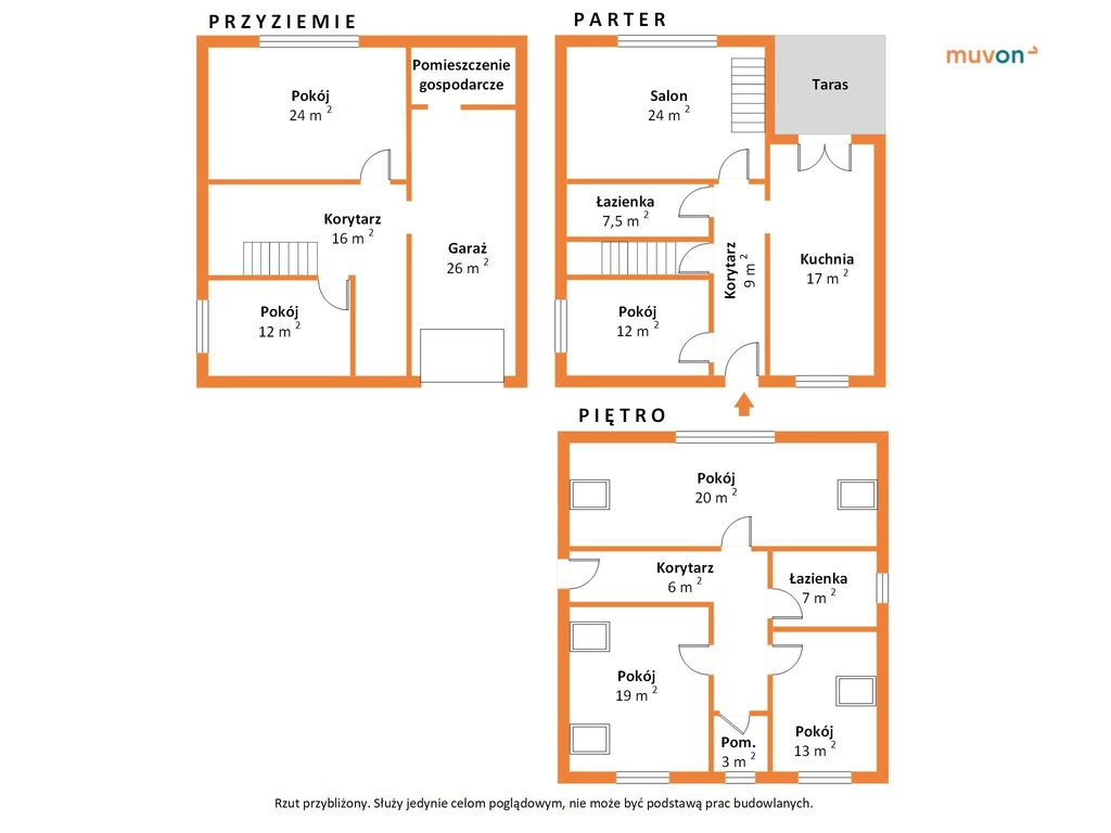 Budynek składa się z piwnicy, parteru oraz piętra i posiada wszystkie media: gaz, prąd, kanalizację, internet.