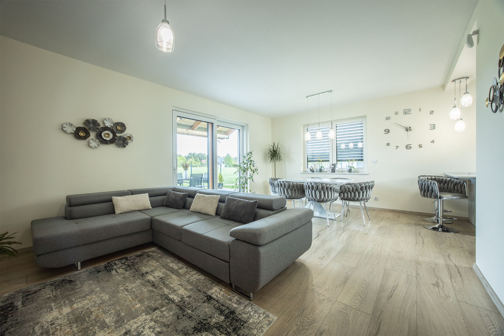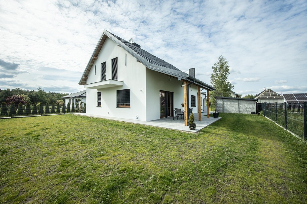 Dom o powierzchni użytkowej 137,68 m² z garażem w bryle budynku (23,25 m²) oferuje przestronne wnętrza, zaprojektowane tak, by maksymalnie wykorzystać każdy metr. Przestrzeń mieszkalna harmonijnie łączy się z zadaszonym, zagospodarowanym tarasem — idealnym miejscem na relaks i spotkania z rodziną i przyjaciółmi. Otaczający dom zadbany ogród dodaje uroku i prywatności, oferując mnóstwo miejsca na aktywny wypoczynek lub aranżację zielonej oazy.