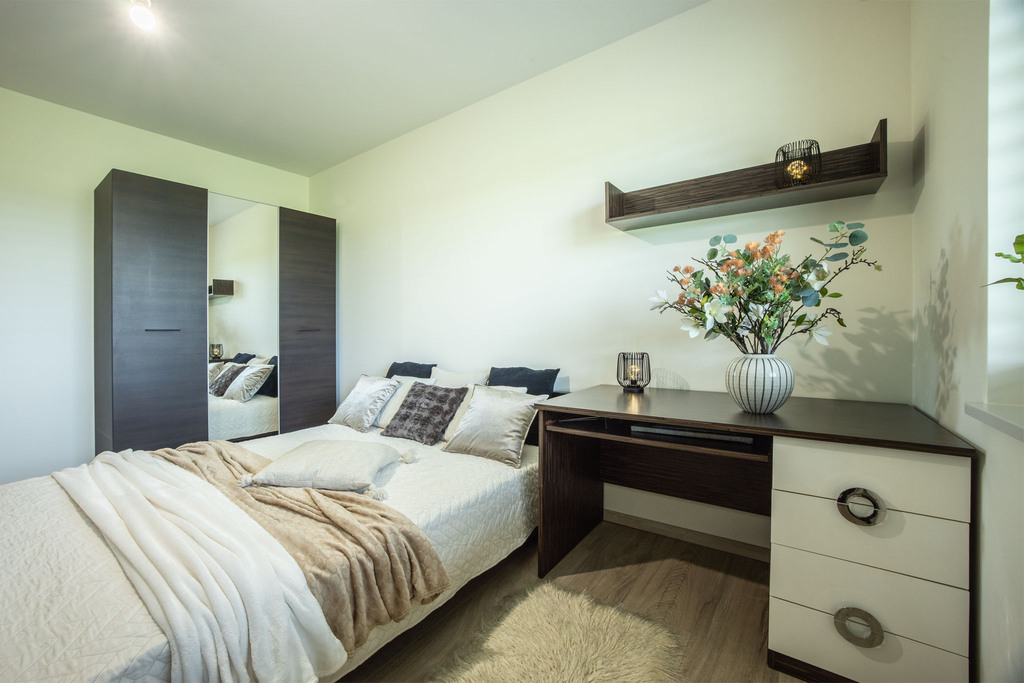 - Bezpieczeństwo — antywłamaniowe drzwi Wikęd, rolety zewnętrzne i żaluzje fasadowe podtynkowe.