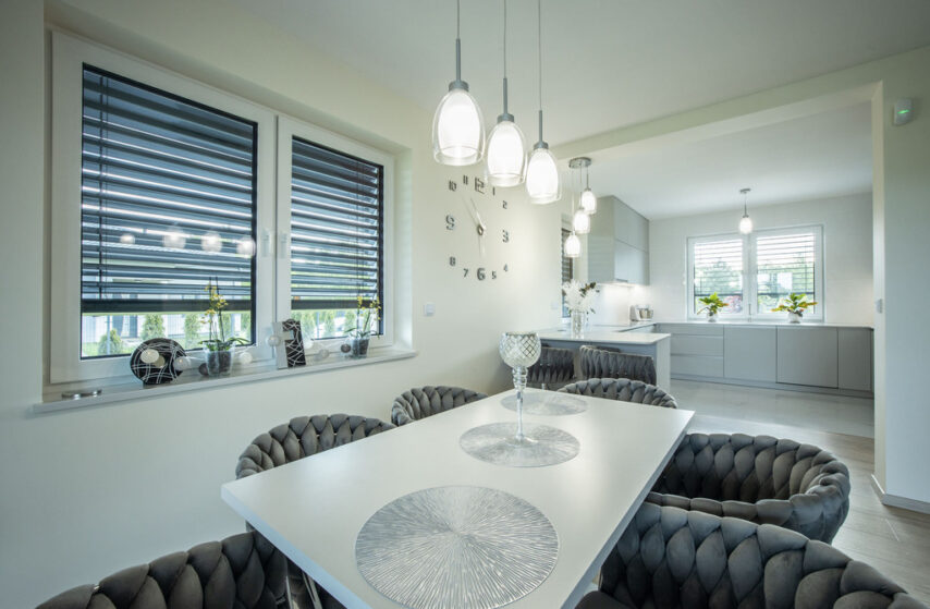 - Żaluzje fasadowe podtynkowe dodatkowo zwiększają izolację termiczną i poziom prywatności.
