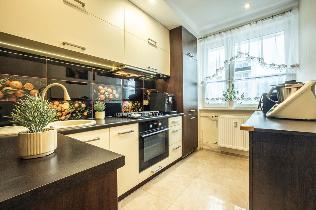 • Oddzielna kuchnia: W pełni wyposażona w meble w zabudowie – gotowa na Twoje kulinarne popisy.