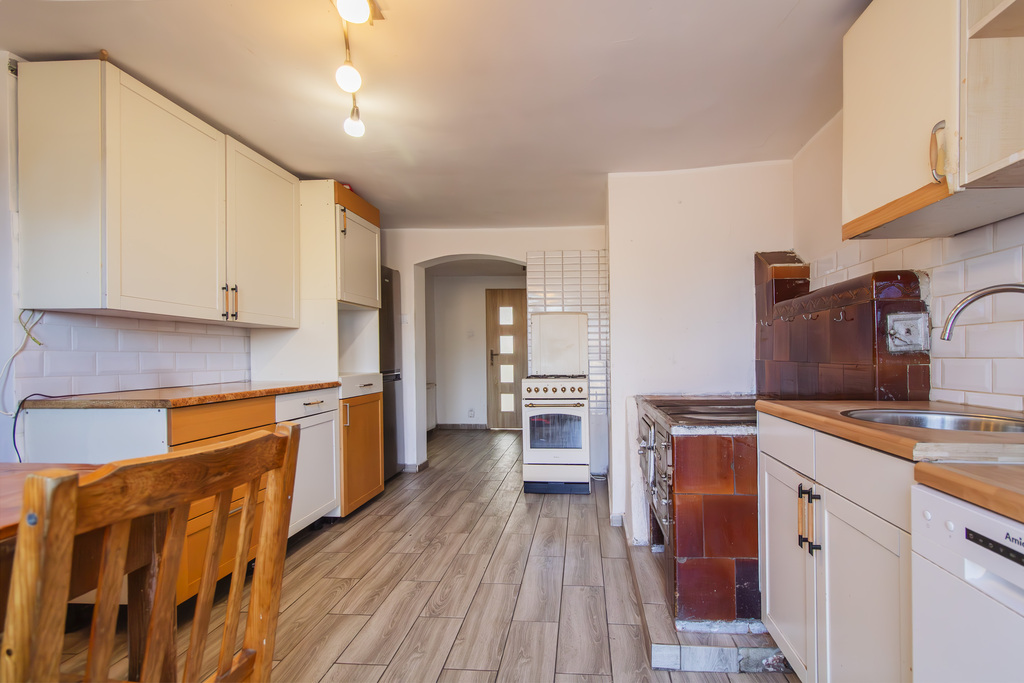Dom jest ocieplony, ogrzewany pelletem i gotowy do zamieszkania. Dodatkowym atutem są solidne zabudowania gospodarcze z cegły, które możesz dostosować do swoich potrzeb – stworzyć warsztat, magazyn, garaż, a nawet dodatkową przestrzeń mieszkalną.
