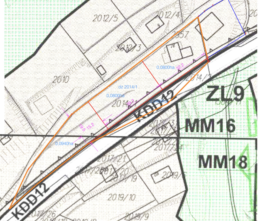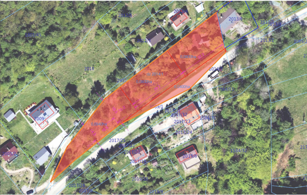 Działki o numerach 2014/1 i 2013/1. Załączone zdjęcia przedstawiają koncepcję podziału.