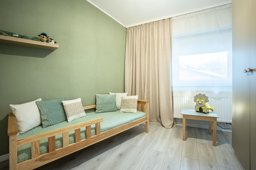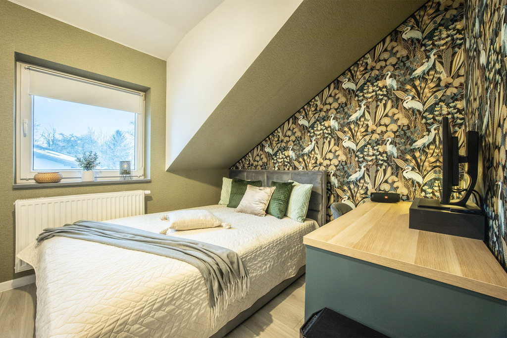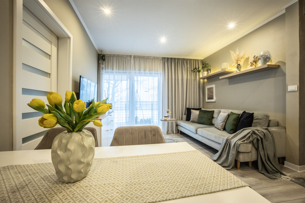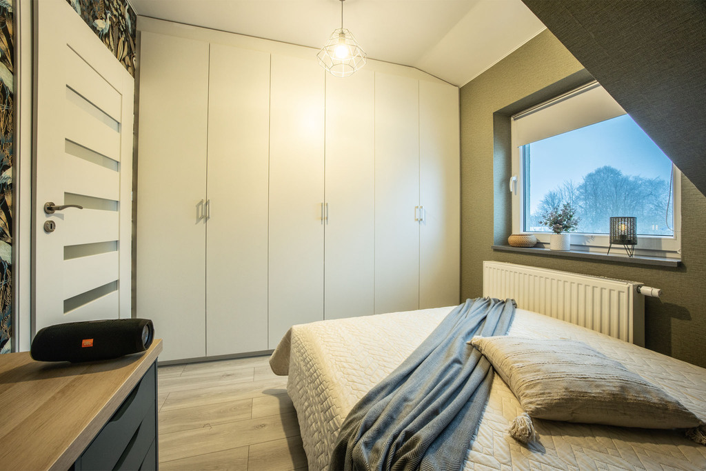 - Dwie ustawne sypialnie: Pokoje idealnie sprawdzą się jako sypialnia główna, pokój dla dziecka lub komfortowy gabinet do pracy zdalnej.
