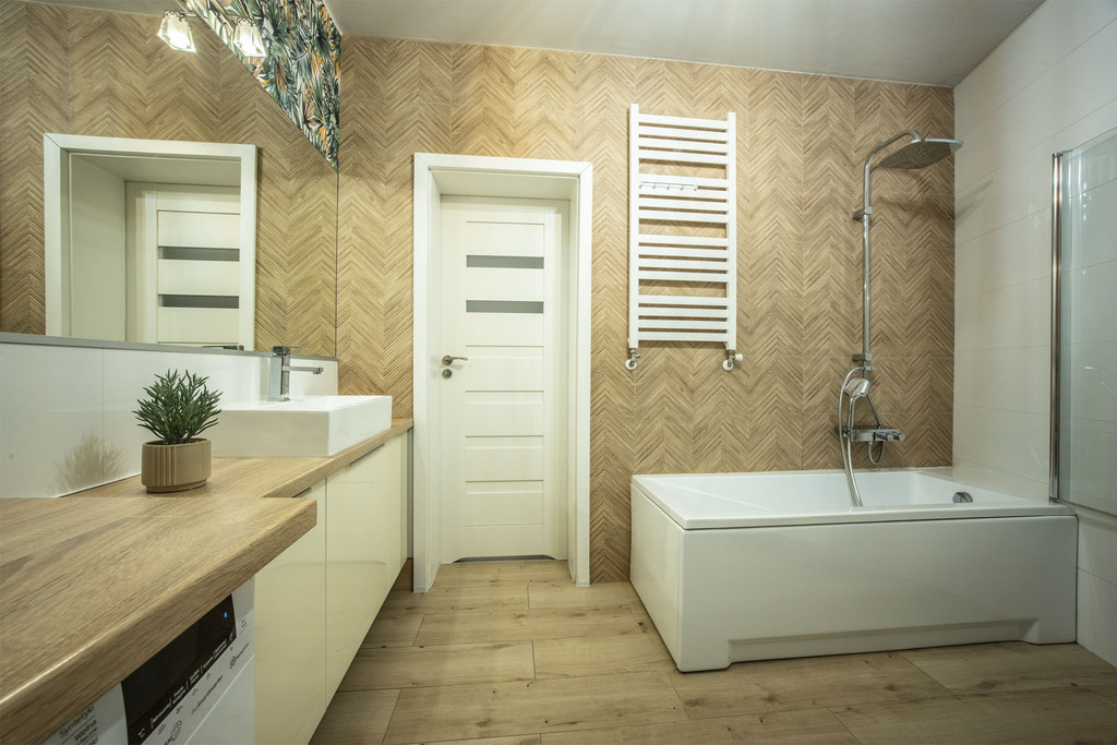 - Łazienka: Nowoczesna, wykończona z dbałością o detale.