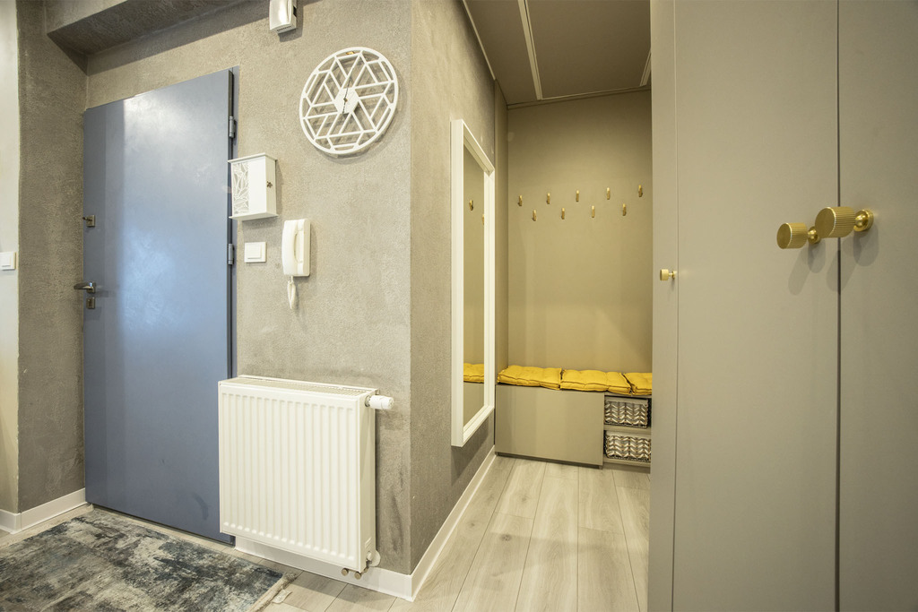 - Przedpokój: Z miejscem na pojemne szafy w zabudowie.