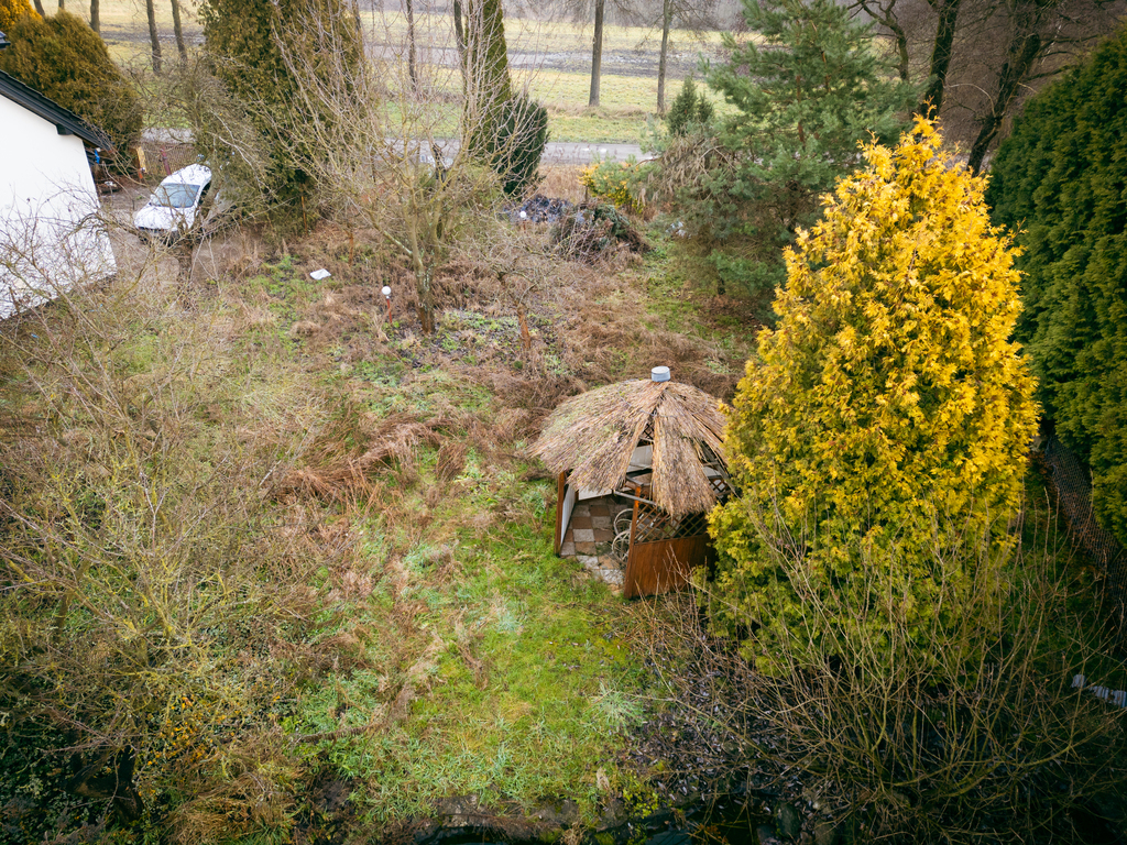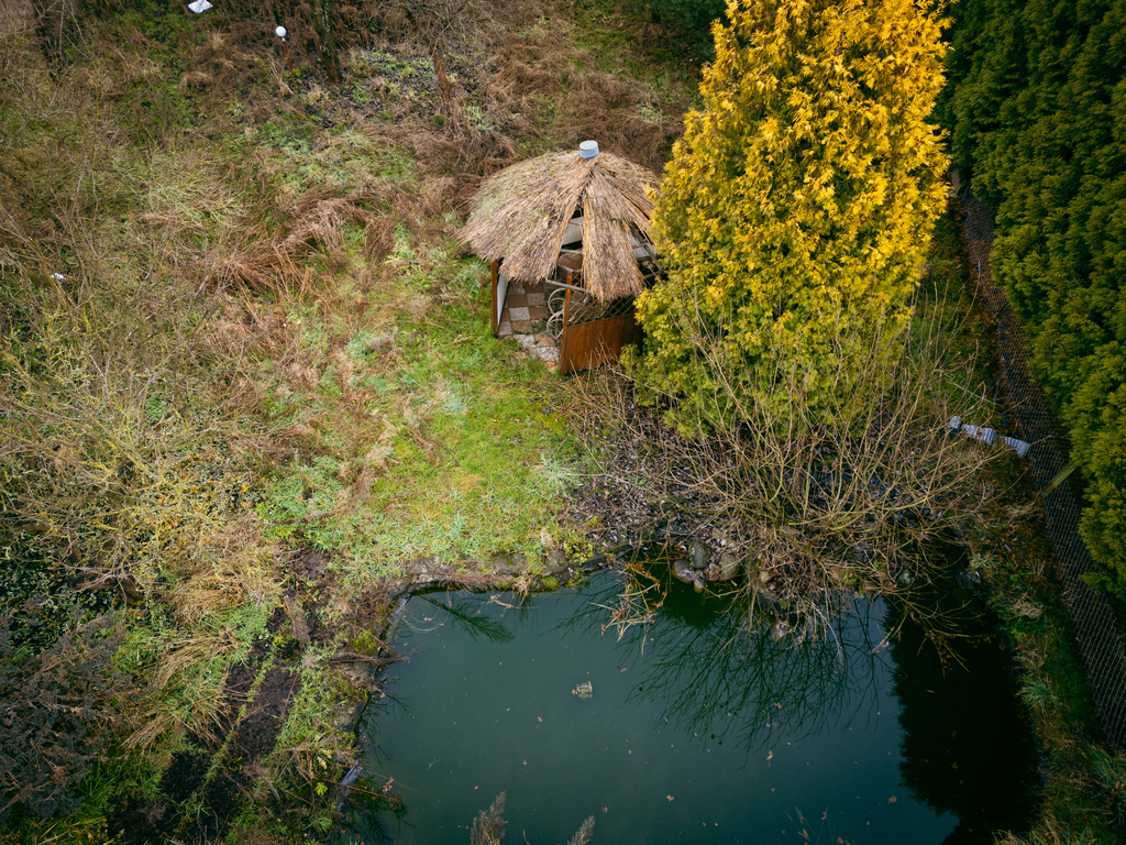 Działka posiada prąd, a w ulicy dostępne są gaz i wodociąg. Na działce stoi drewniany domek idealny do weekendowego relaksu oraz altana i oczko wodne, które tworzą niepowtarzalny klimat. Dodatkowo działka posiada własną studnię, co ułatwia podlewanie ogrodu i roślinności.